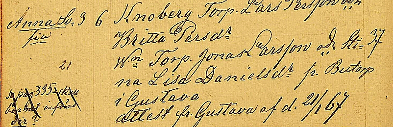 | Bosatt | mellan 1867/1/3 och 1903/7/18 | Sälje, Ekshärad, Värmlands län | 1 | |