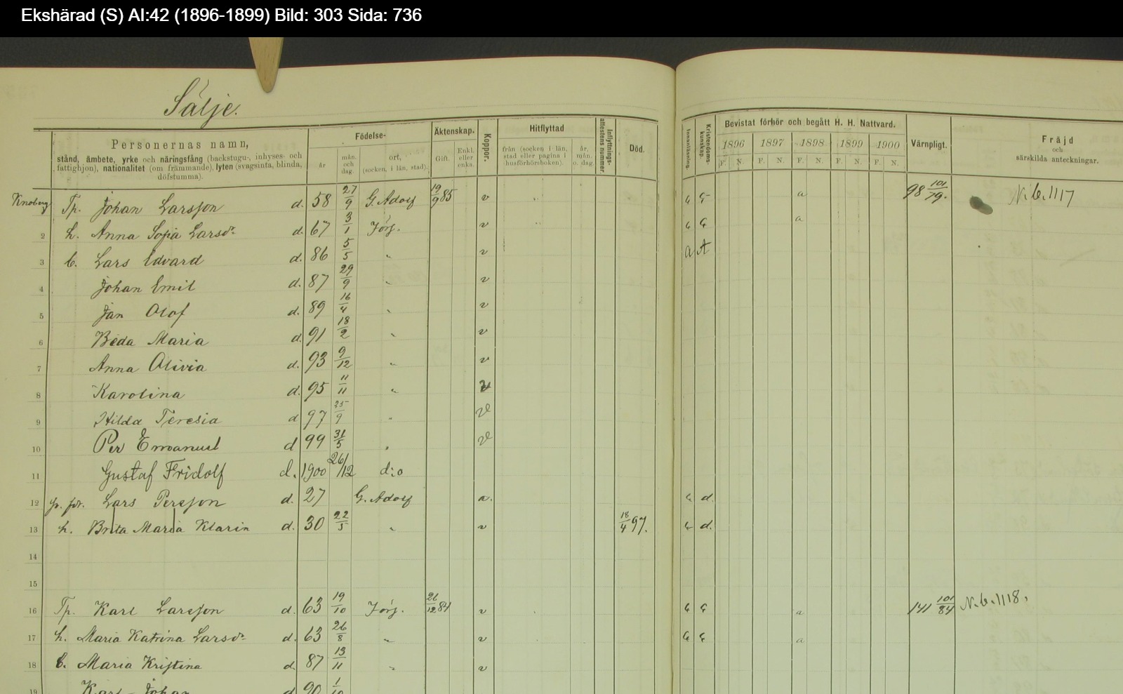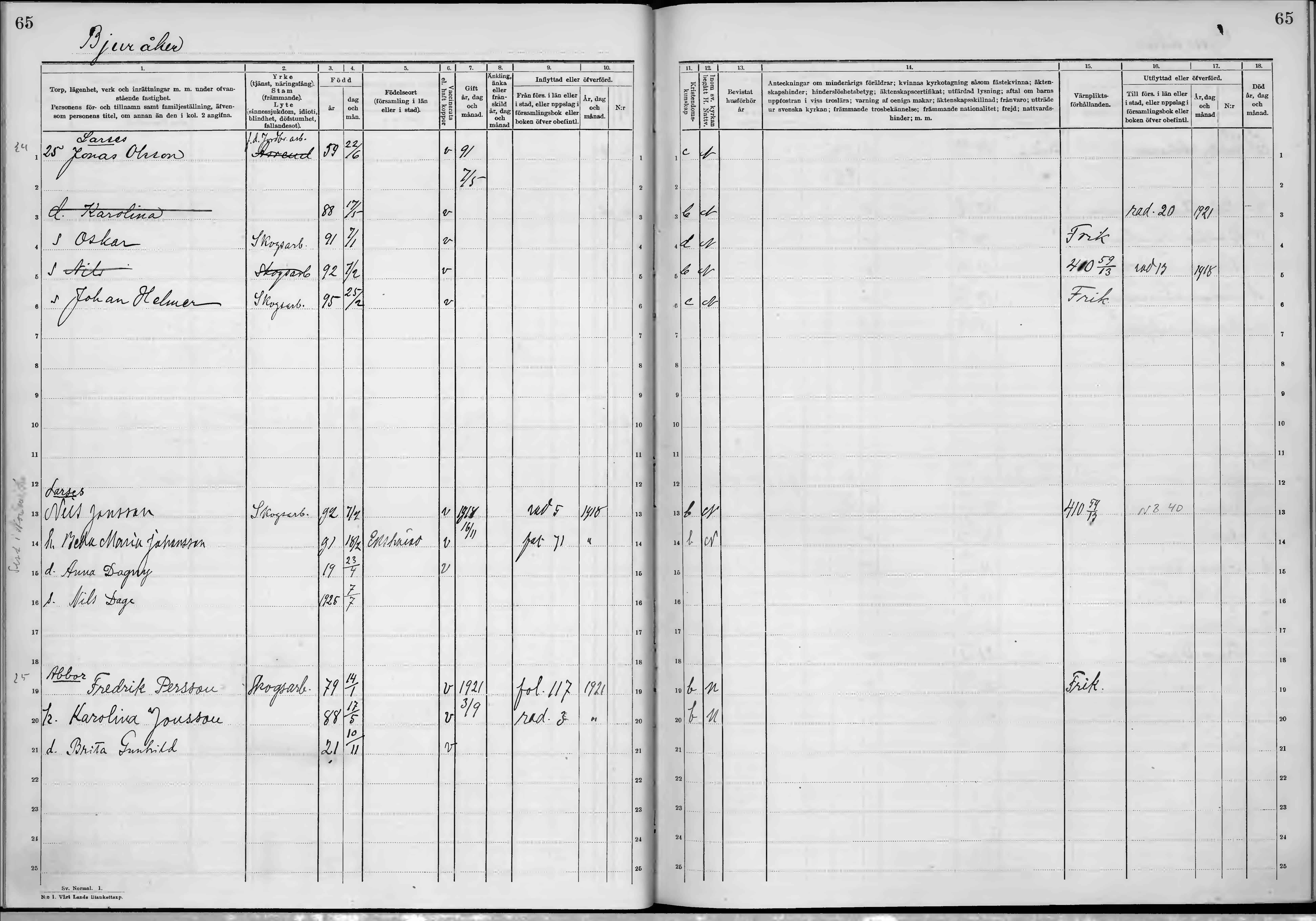 | Födelsedatum | 1891/2/18 (Sälje, Ekshärad, Värmlands län) |