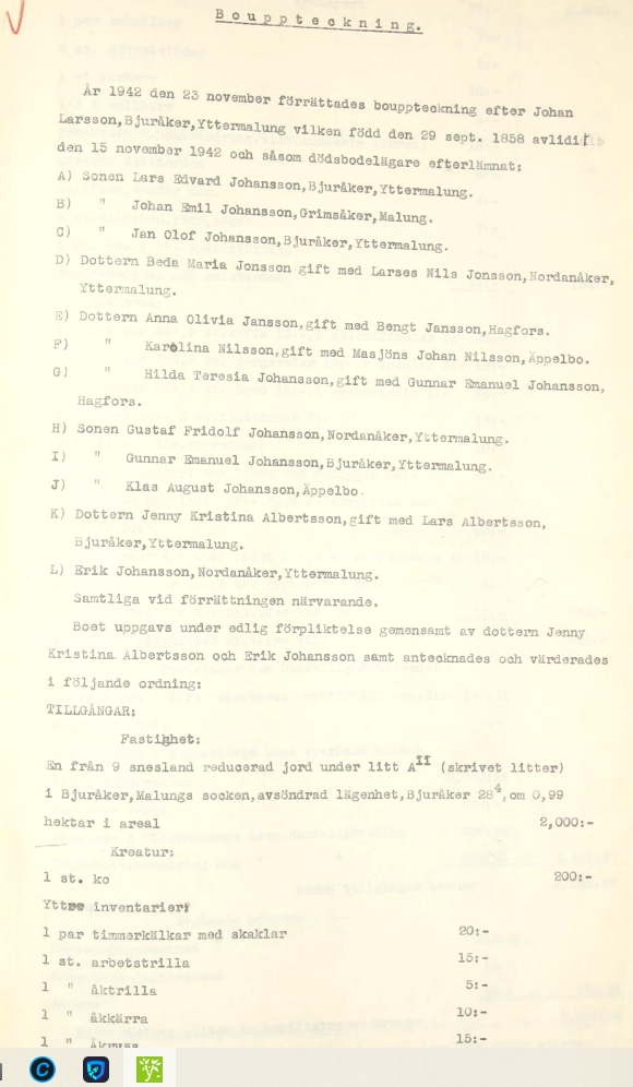 | Bouppteckning | 1942/11/23 | 7 | ||